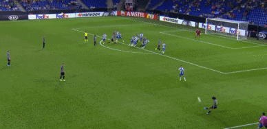 第82分钟,西班牙人前场右路传中,卡莱里插入禁区停球右脚小角度爆射,皮球偏出左侧立柱。