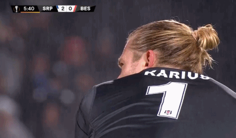 在上赛季欧联杯小组赛第5轮,贝西克塔斯3-2逆转菩萨斯的比赛中,卡里乌斯在开场6分钟内被对手两次攻破球门。其中一次是在开场仅仅50秒内,这又是一次出击失误,卡里乌斯被对方前锋过掉后推射空门得分。