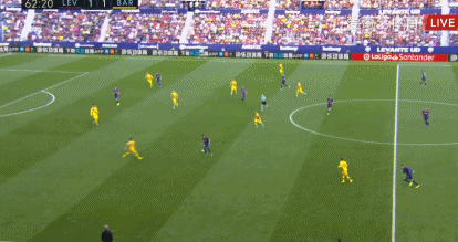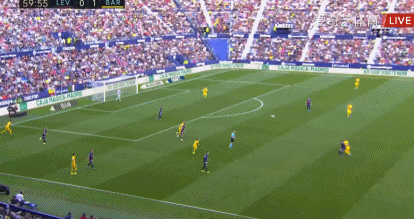 65分钟皮克中场铲倒马约拉尔被黄牌警告,巴萨用法蒂换下阿图尔。67分钟朗格莱肘击梅莱罗被黄牌警告,坎帕尼亚右路任意球传中被顶出,拉多亚大禁区中路凌空抽射,皮球被布斯克茨挡入网窝。3-1,莱万特扩大优势!74分钟梅西射门击中后卫,梅西跟进左脚扣过后卫推射破门。由于格里兹曼做球时越位,此球被吹为无效。
