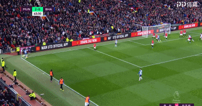 第64分钟,格罗斯开出左侧角球,邓克6码处头球破门,曼联2-1布莱顿。