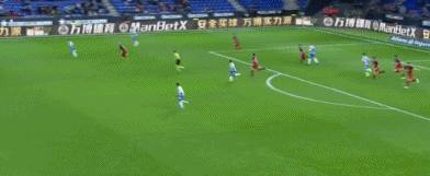 第42分钟,西班牙人快发任意球送出过顶球,武磊快速插上形成单刀球,晃过冲出禁区的门将,可惜力量有些大,武磊错失打门良机,武磊然后在禁区右侧底线附近传中到门前,佩德罗萨跟进头球顶空门高出。