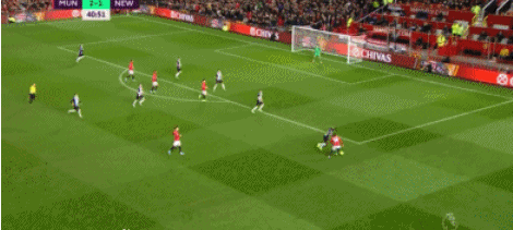 第51分钟,马夏尔前场抢断,带球长驱直入,面对出击的门将,轻巧搓射得分,曼联4-1纽卡。
