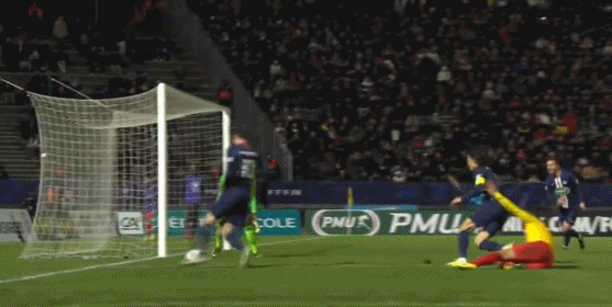 第59分钟,巴黎继续进球,德拉克斯勒禁区前分球给卡瓦尼,被对方后卫索塔抢断,但没能解围,被德拉克斯勒反断后传中,卡瓦尼轻松推射梅开二度,巴黎3-0领先。
