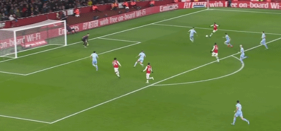 第55分钟,佩佩右侧带球转身后传球,拉卡泽特右侧传中,贝拉尔迪铲球造成皮球变向,内尔森门前扫射破门,1-0,阿森纳主场比分领先。