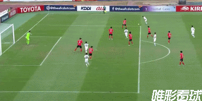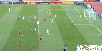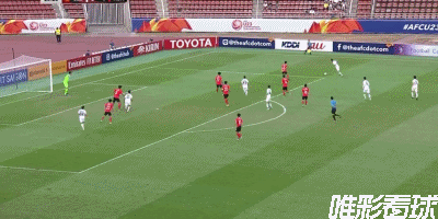 第17分钟韩国队右路长传给到禁区后点,元斗载停球后,右脚大力抽射打偏。