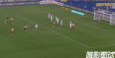第81分钟,莱切前场左侧近距离定位球机会,法尔科来处理,皮球绕过人墙后击中左侧立柱弹出。