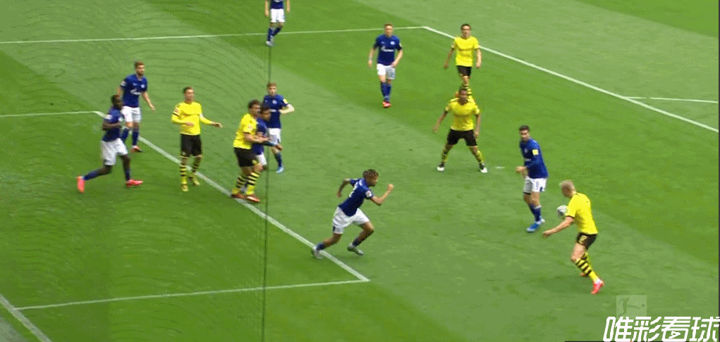 上半场哨响开始,第4分钟,哈兰德凭借个人能力单骑闯关,舒伯特迅速出击将球破坏。