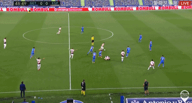 第49分钟,恩巴巴前场强突后单刀带球进禁区,先后过掉对手3人,对手甚至用手都拉不住。可惜恩巴巴面对索里亚的低射被对方用脚挡出,迪达克跟进禁区中路背身勾射偏出。