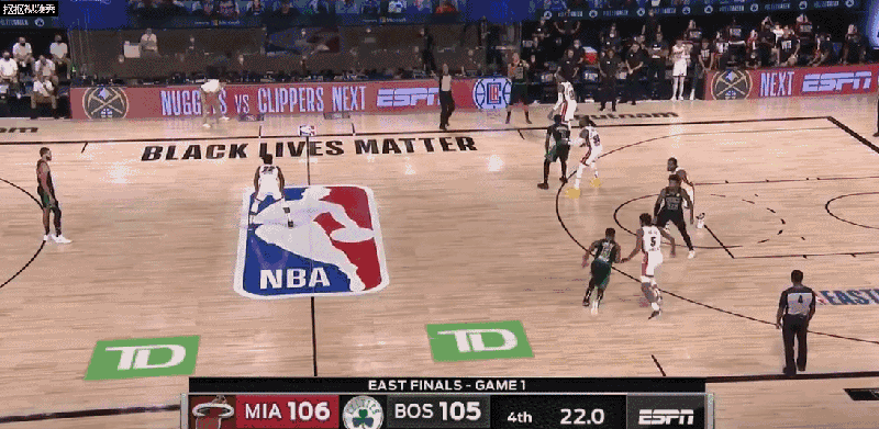 2、最后一节还有7秒左右时,绿军的进攻回合,塔图姆接球出现走步的情况,裁判没有吹罚,这是一次漏判。