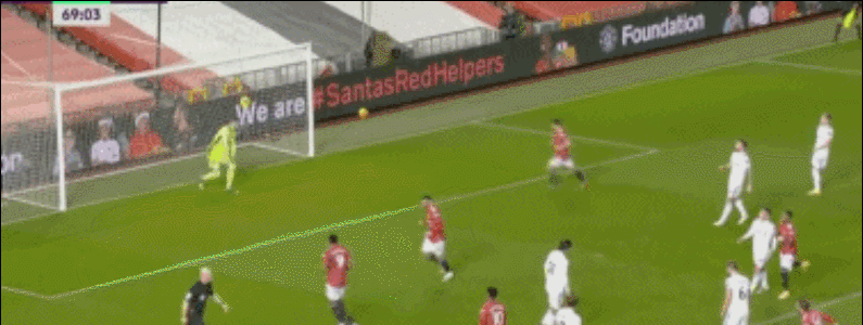 第71分钟,曼联再次发动快速反击,马夏尔禁区内低射,被门将用脚挡了出去。2分钟后,利兹联进球了!达拉斯在外围稍作调整兜射远角,皮球钻入球门右上角!
