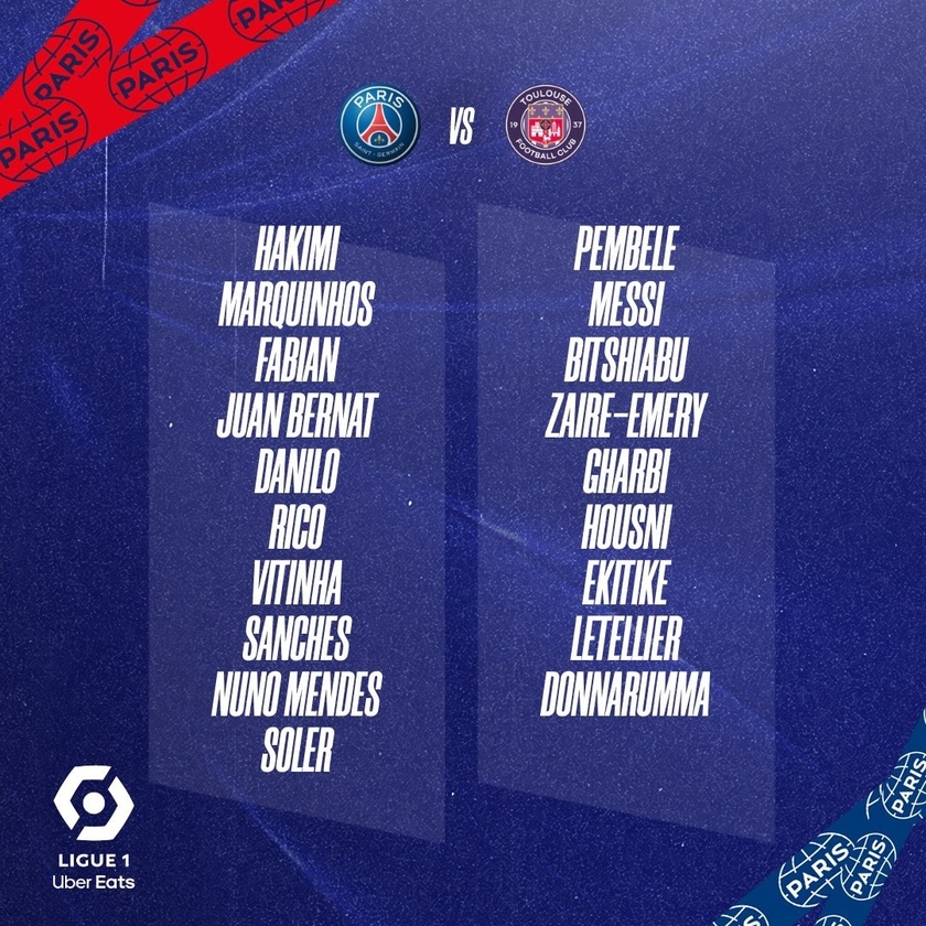 nba直播讯 巴黎今日公布战图卢兹大名单,梅西领衔,姆巴佩、内马尔、拉莫斯伤缺。