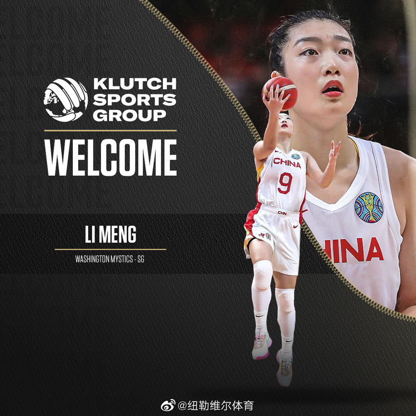 nba直播讯 中国女篮明星球员李梦签约WNBA华盛顿神秘人,并与世界知名体育公司KLUTCH展开合作!