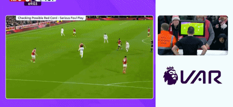 第70分钟,比苏马踩踏对手,主裁观看VAR后直红将其罚下