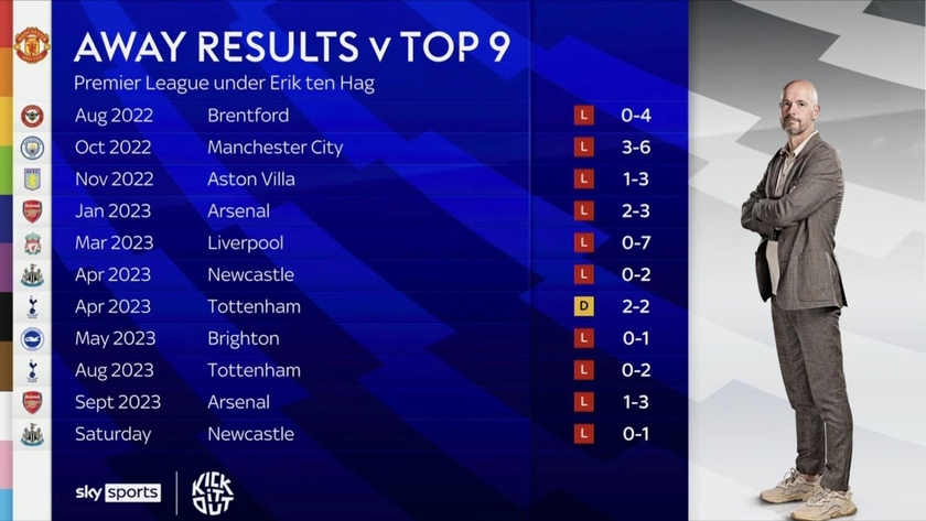 nba直播讯 自滕哈赫去年夏天执教曼联以来,球队在英超联赛客场对阵前9名球队的战绩为1平10负,球队在可能拿到的33个积分中只拿到1分!