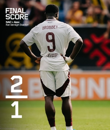 下半场补时第1分钟,保拉左侧定位球开向禁区,后点范登伯格头槌破门,布雷达2-1阿贾克斯