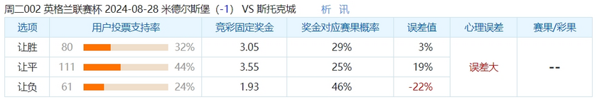 综上分析,双方近6次交战,米堡取得1胜3平2负处于劣势,且上赛季米堡被斯托克城主客场双杀,可见斯托克城面对米堡时并不怵对手,而本场比赛数据方面初始给到米堡支持,力度基本上都在0.5的位置,后续大部分提升到了0.75的位置,且双方的回报均在中高位,可见市场对米堡的信心,如果单单从实力、定位和形象来看,米堡确实是占据优势的,而且本场比赛还坐镇主场,优势面拉力不错,获得数据力度支持也是合理的,如果是初始0.5的话,还是能接受,但后续提升到0.75有点刻意拉大了,毕竟斯托克城此前面对米堡并不落下风,上赛季还双杀了米堡,正好就是上赛季米堡主场面对斯托克城就是开出了0.75的数据力度,当时直接就输球了,因此本场依旧需要谨慎对待,况且新赛季的斯托克城在防线和锋线上有所提升,是不能小看的,所以本场比赛不妨搏冷反追斯托克城客场取得不败。