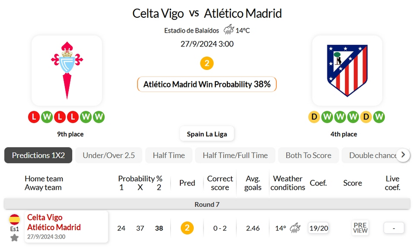 Atlético Madrid are unbeaten in 25 of their last 28 games against Celta Vigo in all competitions