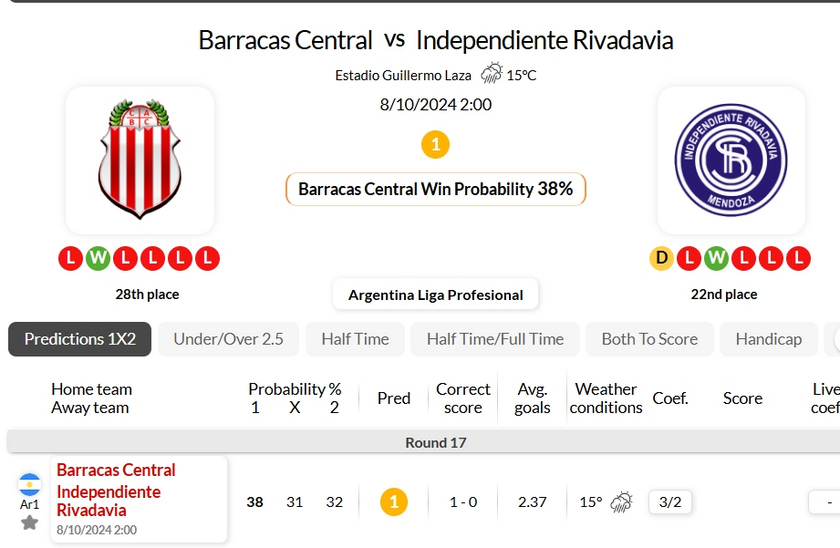 Barracas Central have won just 1 of their last 15 matches in Liga Profesional