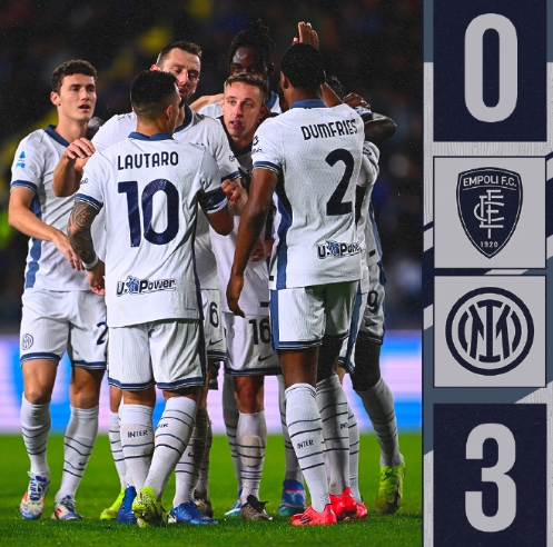 比赛中,上半场达米安进球手球无效,图拉姆造红牌,下半场弗拉泰西梅开二度,劳塔罗传射,巴雷拉和达米安送助攻。最终国际米兰客场3-0完胜十人恩波利,国米联赛5轮不败。积分榜方面,国米积21分位居第2,距榜首那不勒斯4分。