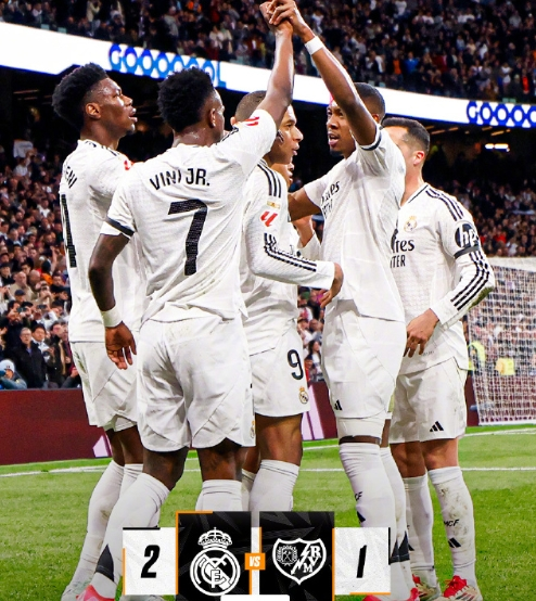 nba直播讯 西班牙足球甲级联赛第27轮,皇家马德里坐镇伯纳乌球场迎战巴列卡诺。 凭借姆巴佩和维尼修斯的进球,皇家马德里2-1战胜巴列卡诺,取得各项赛事两连胜的同时,也反超马竞升至积分榜第二位。