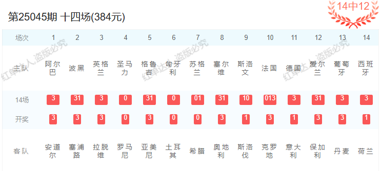 上一期14场中12场,非常可惜,两场欧国联搏胆失败,本期14场全部由世预赛组成,6场世亚预,3场世欧预和5场南美预选,本期难度中等。