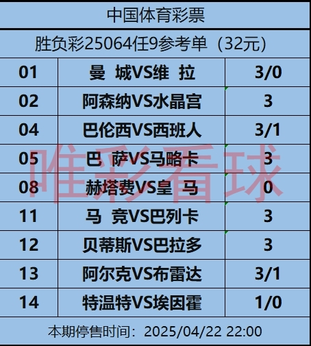 金石开:由于本周中有一轮西甲,所以安排了一期英超+西甲+意大利杯+荷甲的组合。虽然昨日周一彩的意甲场次因为教皇的去世而被延期,但入选本期的意大利杯半决赛米兰德比,目前的消息是应该不会被延期。本期的胆材选择还是不少,英超两场提前进行的比赛都贡献了主场胆材。曼城主场对阵维拉,也是欧冠门票之争,两队只差一分,分别落后欧冠区一分和两分,这场比赛也是一场生死大战。近期双方状态都不错,曼城3胜1平,维拉在联赛、欧冠和足总杯取得10胜1负的战绩,联赛豪取五连胜。此役,机构给出曼城1.82的主胜指数,但面对状况极佳的维拉,他们能否全取三分?
