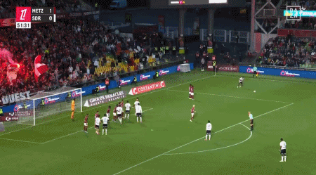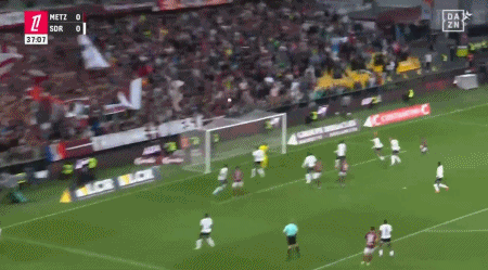 第38分钟,萨巴利助攻,乌敦俯冲头球破门,帮助梅斯取得1-0的领先。