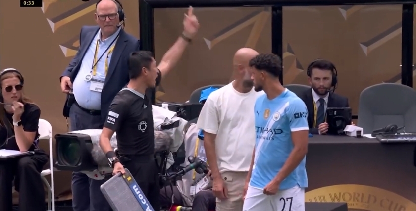 nba直播讯 在世俱杯小组赛G组第1轮比赛中,曼城以2-0战胜维达德,比赛中出现了一幕有趣的插曲。比赛进行到第88分钟时,曼城球员刘易斯因犯规被裁判直接出示红牌罚下。这一突发情况让曼城不得不做出人员调整,他们决定用努内斯替换下场的刘易斯。然而,在换人过程中,换人牌的使用出现了一些状况,这导致曼城主帅瓜迪奥拉不得不亲自来到场边与第四官员马宁进行交涉。