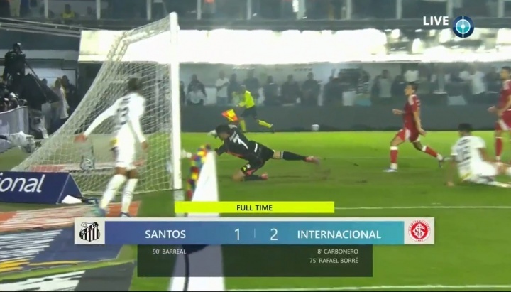 nba直播讯 2025年7月24日, 巴甲第16轮,桑托斯主场1-2憾负巴西国际,内马尔在比赛第94分钟抽射击中立柱弹向球门,但是被门将在门线上极限扑救,最终显示此球没有过线。