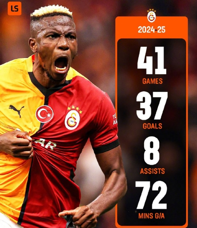 2024年9月份,加拉塔萨雷以租借的形式将意甲金靴奥斯梅恩带到了土超,24-25赛季为球队出场41次,打进37球8助攻的巨星表现,为球队赢得土超冠军、土耳其杯冠军,让球队高层对其爱不释手。