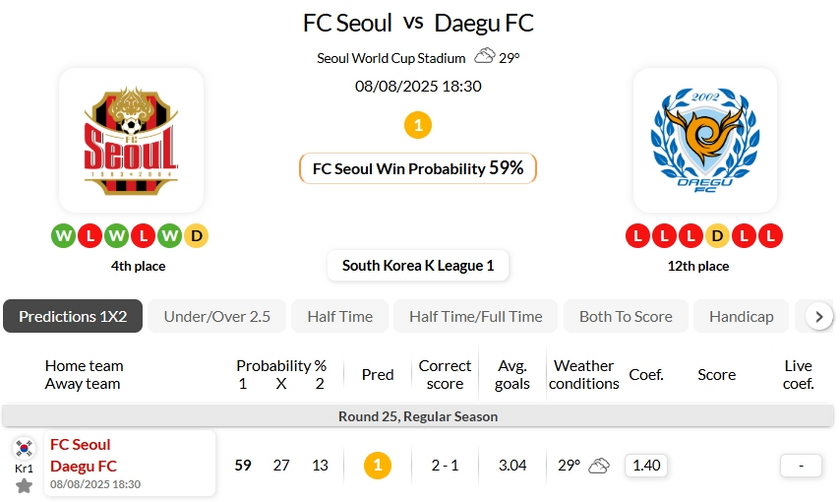 We have seen 3 consecutive defeats in the most recent games in K League 1 of Daegu FC