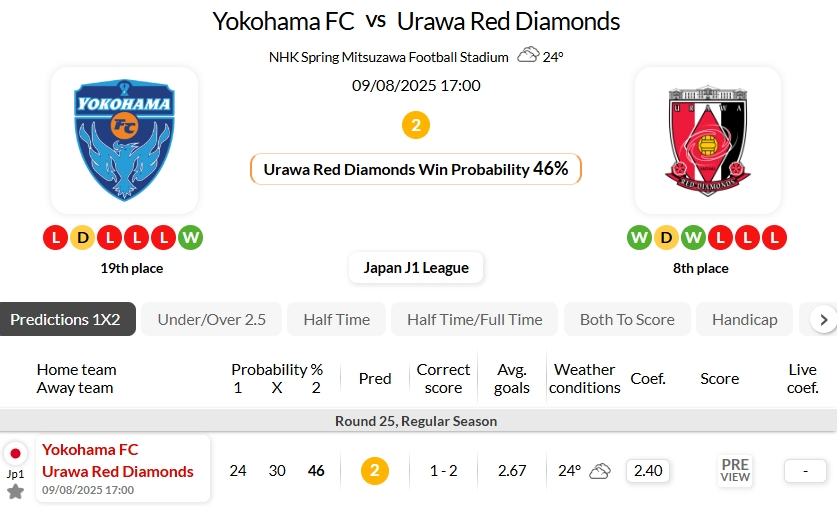 Urawa Red Diamonds have kept a clean sheet against Yokohama FC in their 3 most recent away clashes in J1 League