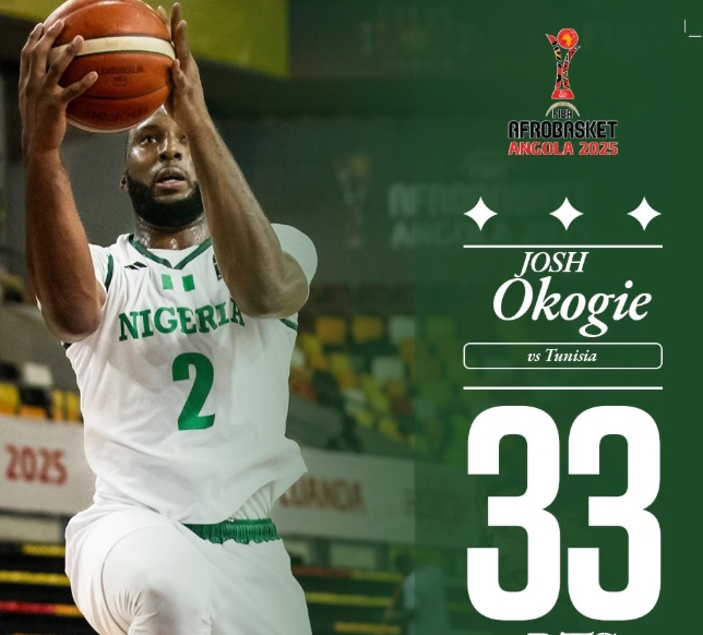 nba直播讯 在今天结束的男篮非洲杯小组赛上,尼日利亚男篮87-66大胜突尼斯男篮,取得了小组赛两连胜。本场比赛,尼日利亚男篮球员约什·奥科吉发挥出色,出场仅24分钟,19投12中、三分球7投3中,狂砍33分6篮板2助攻1盖帽。
