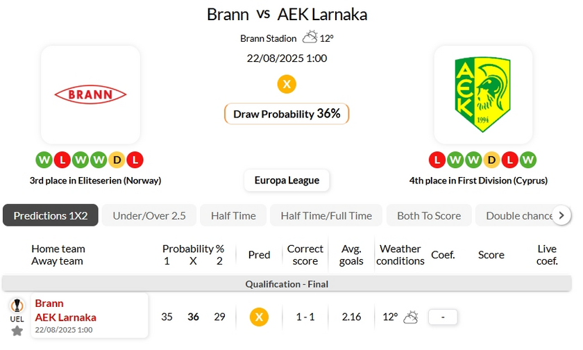 Brann are conceding an average of 0.50 goals in Europa League matches