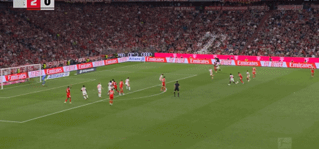 第42分钟,拜仁获得右侧角球机会,第一点被解围,外围拜仁拿球再次组织进攻,格纳布里拿球吸引防守后分给奥利塞,奥利塞晃开角度低射破门,上半场拜仁3-0领先。