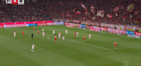 下半场易边再战,第64分钟,拜仁打出反击,格纳布里前场被绊倒,路易斯 - 迪亚斯得球后继续进攻,随后在禁区内分球给凯恩,后者扣过防守球员后低射破门,拜仁4-0领先。