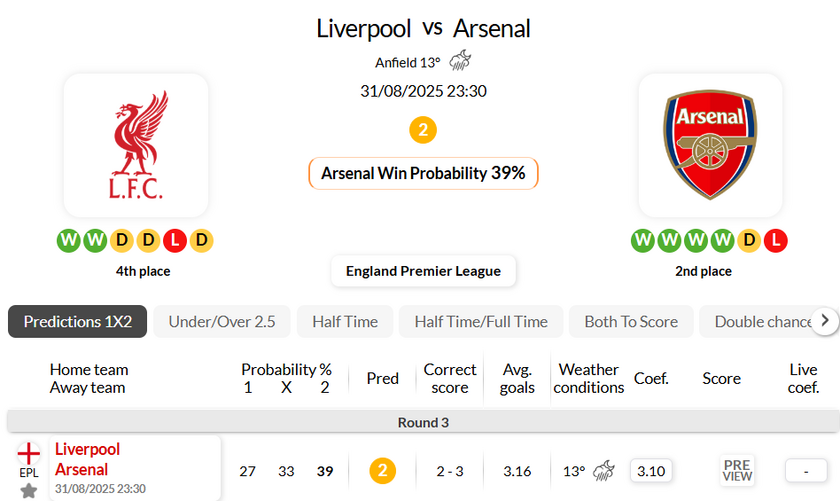 Both teams scored in Arsenal's 6 most recent meetings with Liverpool in Premier League