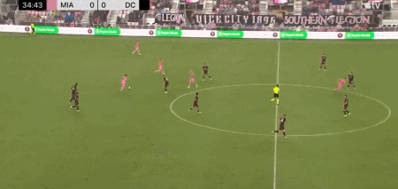 - 第35分钟:梅西后场得球,向前一脚过顶打穿华盛顿联防线,阿连德前插形成单刀,右脚冷静推射破门,迈阿密国际1-0领先。