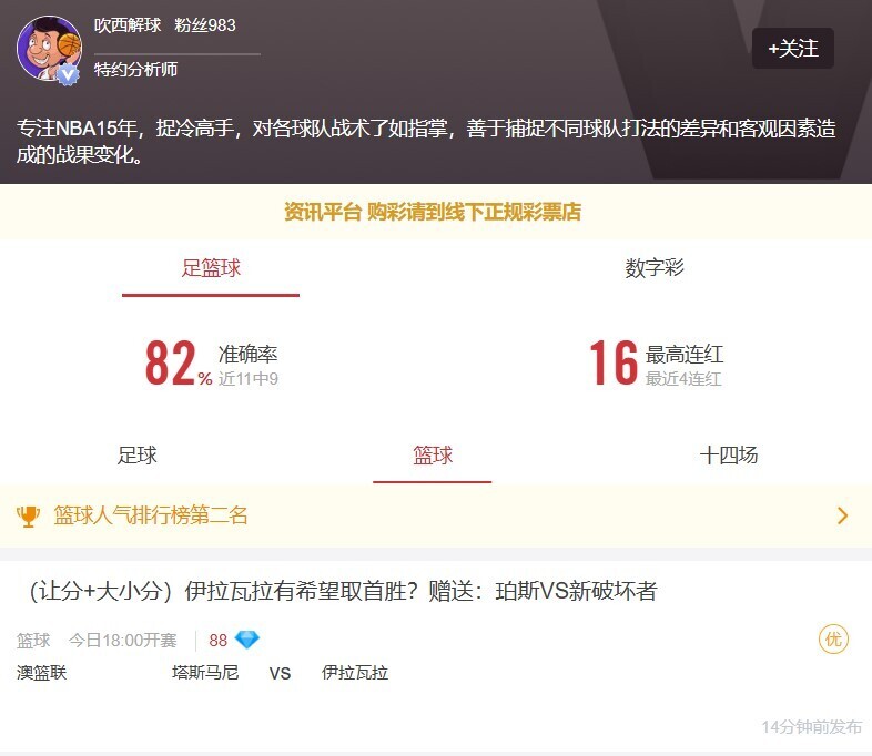 吹西解球专家今日为大家推荐的场次是:周六301 NBL澳篮联 珀斯野猫VS新西兰破坏者