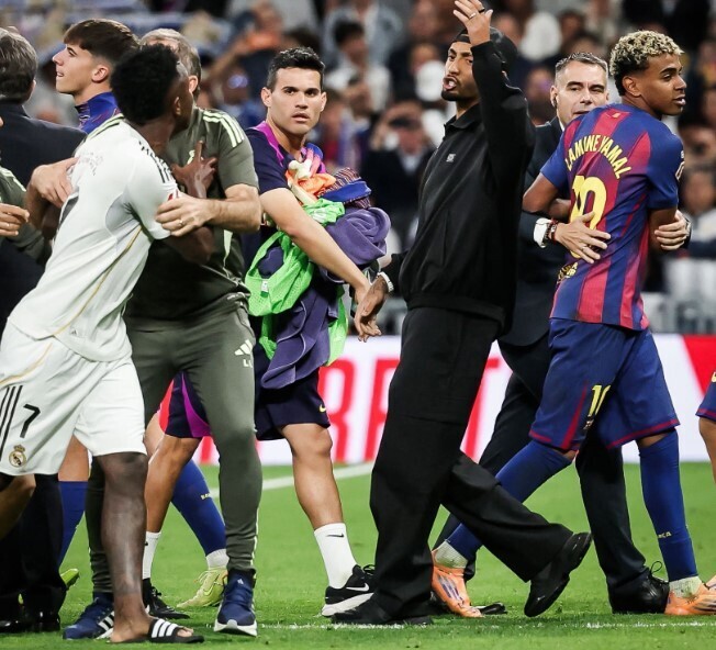 冲突中,亚马尔虽然言语挑衅“有种一会单挑”,但身体却始终在后退,并率先离开了现场。维尼修斯被激怒欲上前理论,幸而被工作人员及时阻拦,才避免了冲突的进一步升级。