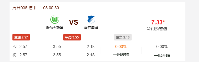 冷门预警:沃尔夫斯堡效率不佳,霍芬海姆做客10场不败