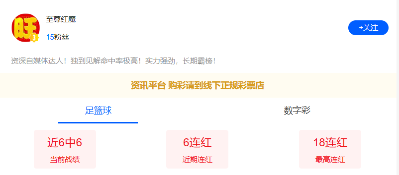 近期状态极佳! 至尊红魔六连红!更多场次解读推荐不容错过!点击此处即可前往>>