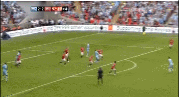 当时间在一分一秒的流逝中,曼城主帅休斯已经不断在向第四官员抱怨补时时间已到,就在这种情况下,曼联在第96分钟完成了绝杀:吉格斯本场比赛第三次送出助攻,他在高位敏锐地抓住了曼城防线的漏洞,用一脚直塞找到了欧文,前英格兰金童杀入禁区外脚背推射远角攻入争议绝杀。