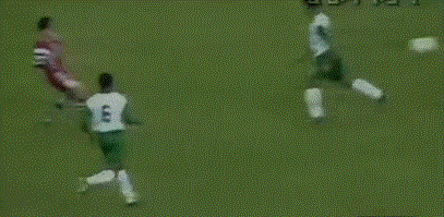 客场战平卡塔尔,中国队找回了士气,第三场主场力克沙特,第四场客场对阵科威特,郝海东先打入了这记经典的转身抽射。