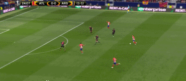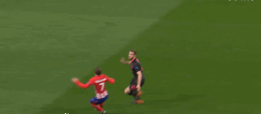 第37分钟,科克开出前场右路定位球给到禁区,门前的格里兹曼背身将球巧妙卸下后,转身一脚抽射稍稍偏出球门左侧立柱出了底线。