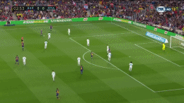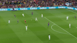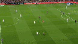 通过上图可以看到,在巴萨的左侧进攻中,贝尔落位到低位形成一个532的阵型。在巴萨将球回做到高位并转移右侧之后,皇马防线上的空档就被巴萨直塞利用。