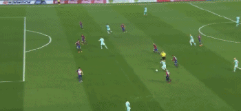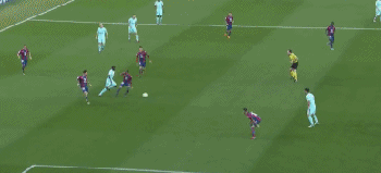 第39分钟,禁区线附近的皮克分球,苏亚雷斯将球一做,跟上的库蒂尼奥带球内切后一脚漂亮的抽射破门得分!2-1!巴萨扳回一城!