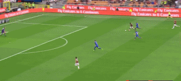 第42分钟,恰尔汗奥卢右路底线附近假动作晃过防守后传中,库特罗内俯身头球冲顶破门!2-1!
