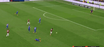 半场补时第3分钟,凯西右路横传,卡利尼奇禁区内回做,库特罗内直接右脚大力抽射击中右侧边网。