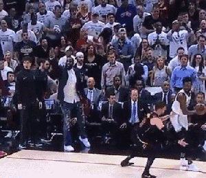 而末节连续的两个三分球命中后,他肆意发泄捶胸怒吼,我们知道这场比赛在那会就已经结束了。